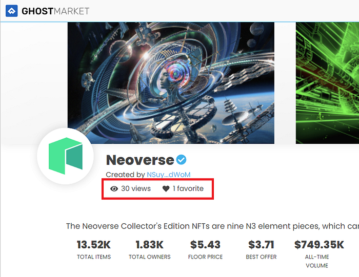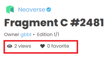 Favorites gives you the ability to favorite an NFT or an NFT collection/Artist, this will help you find collections you have taken interest in previously, as well as allow for expanded searching in the future. Also, next to the favorite button is a view counter, you can now see how many views a collection/artist or an NFT is receiving.